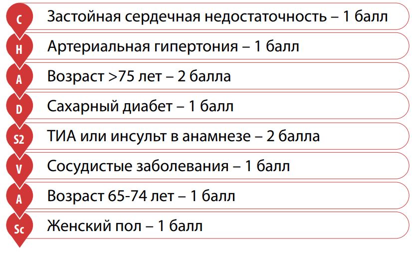 Для выбора и назначения антикоагулянтной терапии у больных с ФП широко используется шкала